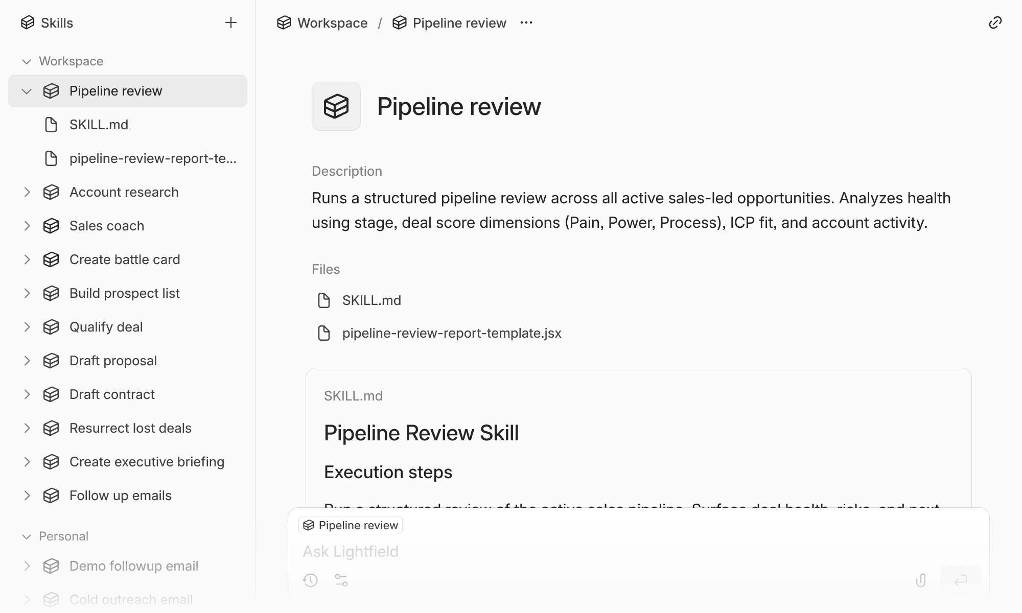 We’re adding Skill and Knowledge file directories to Lightfield — making it much easier for agents to access useful context about your business and how to perform frequent tasks in your go-to-market.