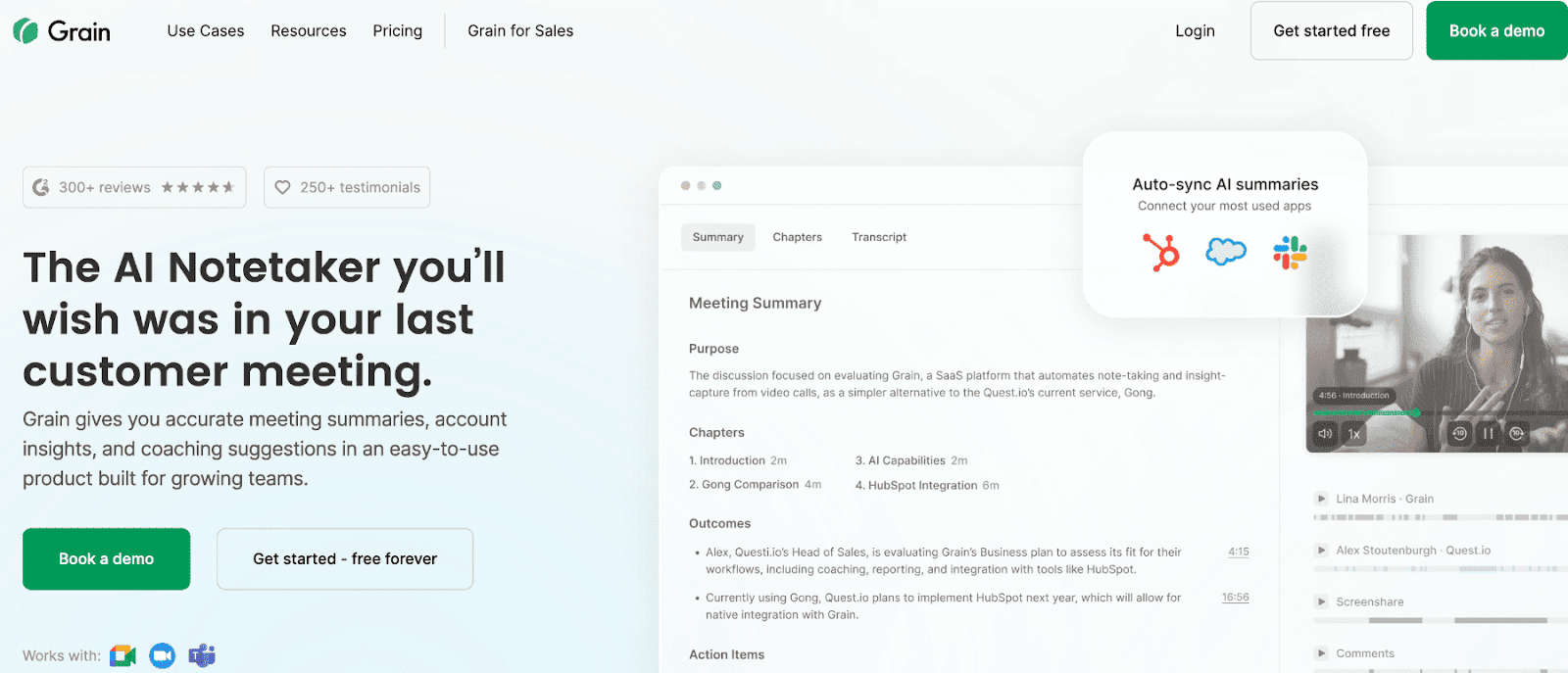 AI meeting notes with video highlights for coaching and collaboration.