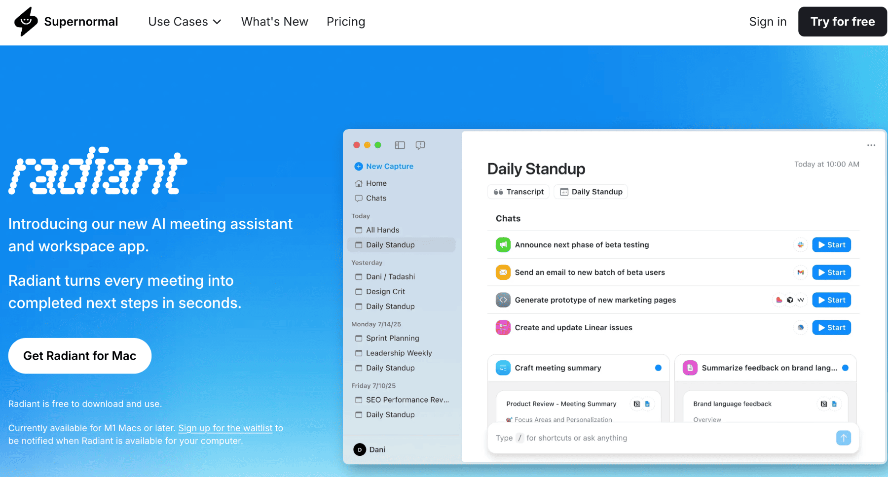 10. Radiant by Supernormal — Best for: Action-driven sales and GTM teams