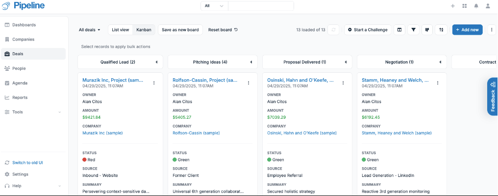 8. Pipeline CRM— Best for teams seeking clear pipeline visibility