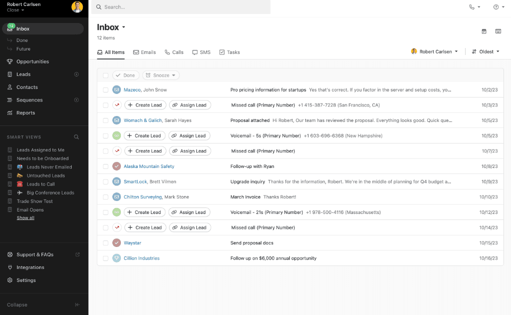 3. Close CRM — Best for: Inside sales teams seeking integrated communication