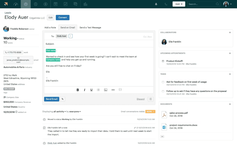Sales-focused CRM that integrates calling, email, and task management for high-touch customer communication.