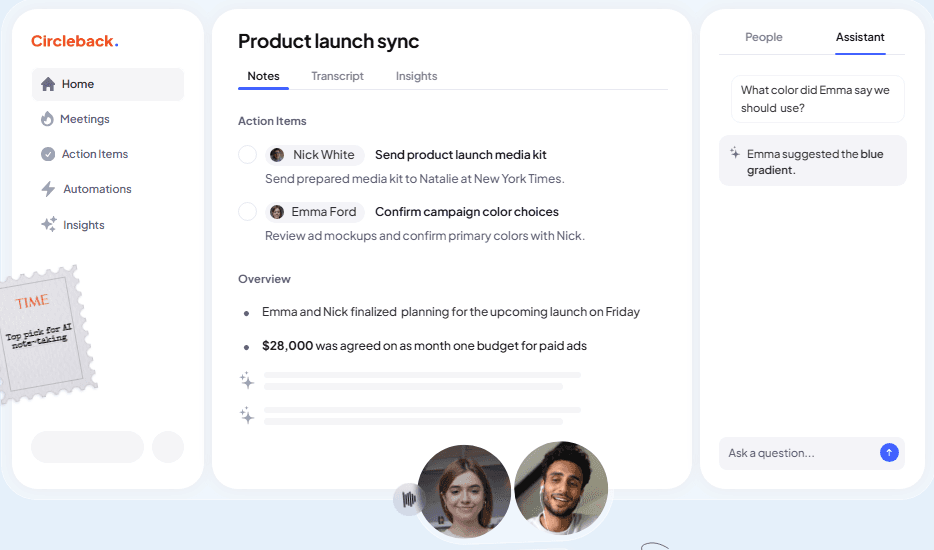 8. Circleback — Best for teams that want automated meeting notes with flexible workflows and integrations