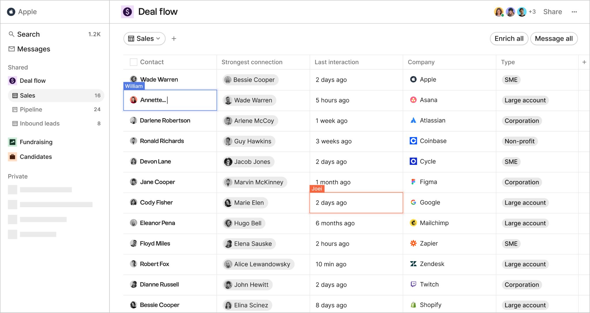 Folk is a lightweight, relationship-first CRM for individuals and small teams. Its spreadsheet-like simplicity, folkX one-click capture from LinkedIn and the web, and AI assistants for follow-ups and sequences make it a natural upgrade from spreadsheets, Notion, or Airtable. It prioritizes getting you set up and outreaching in minutes, not weeks.