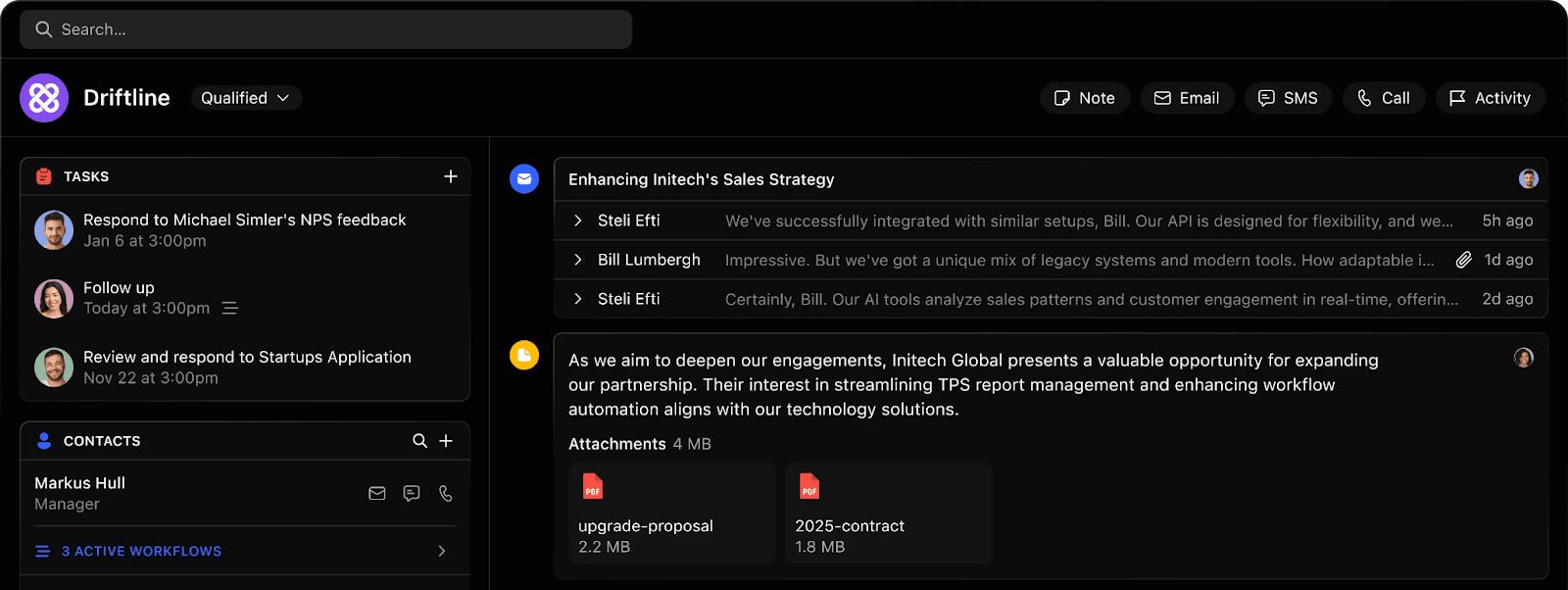 Closes the gap between conversation activity and CRM records.