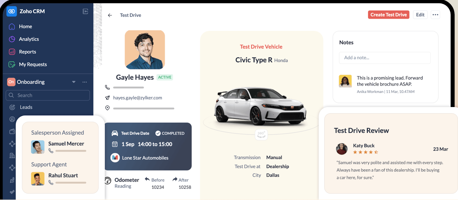 End-to-end CRM covering sales, marketing, support, and operations with deep Zoho ecosystem integration.
