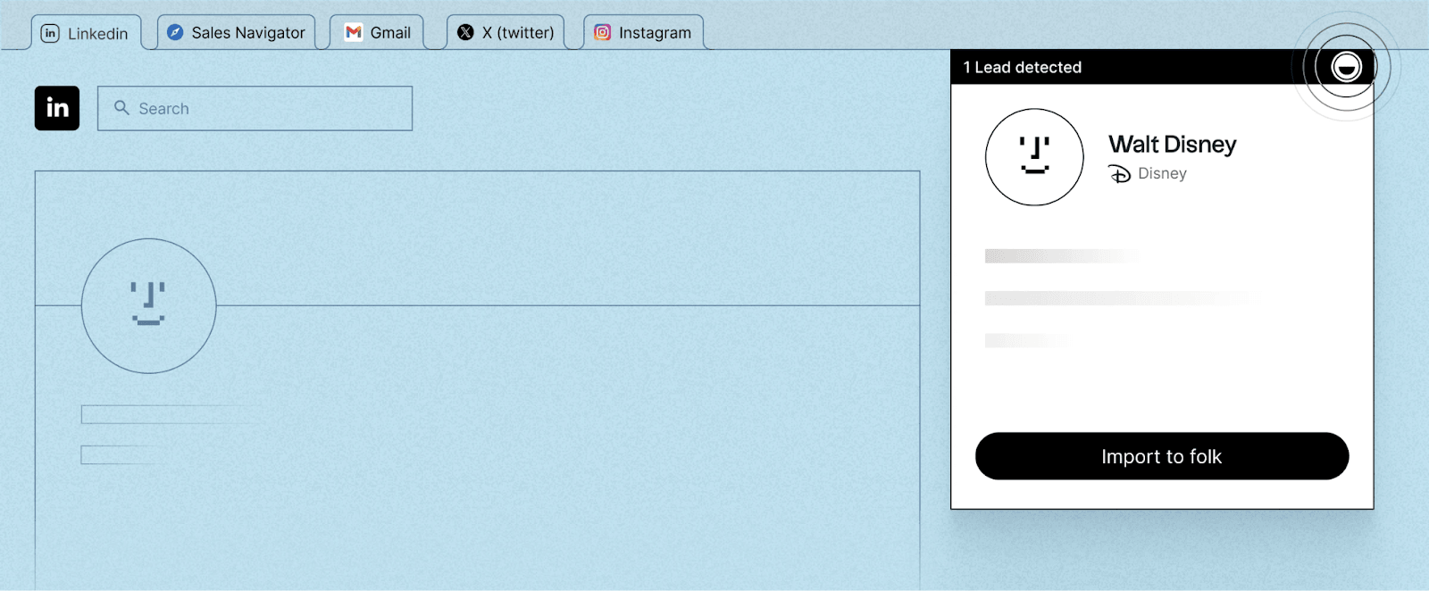 - One-click LinkedIn capture and enrichment