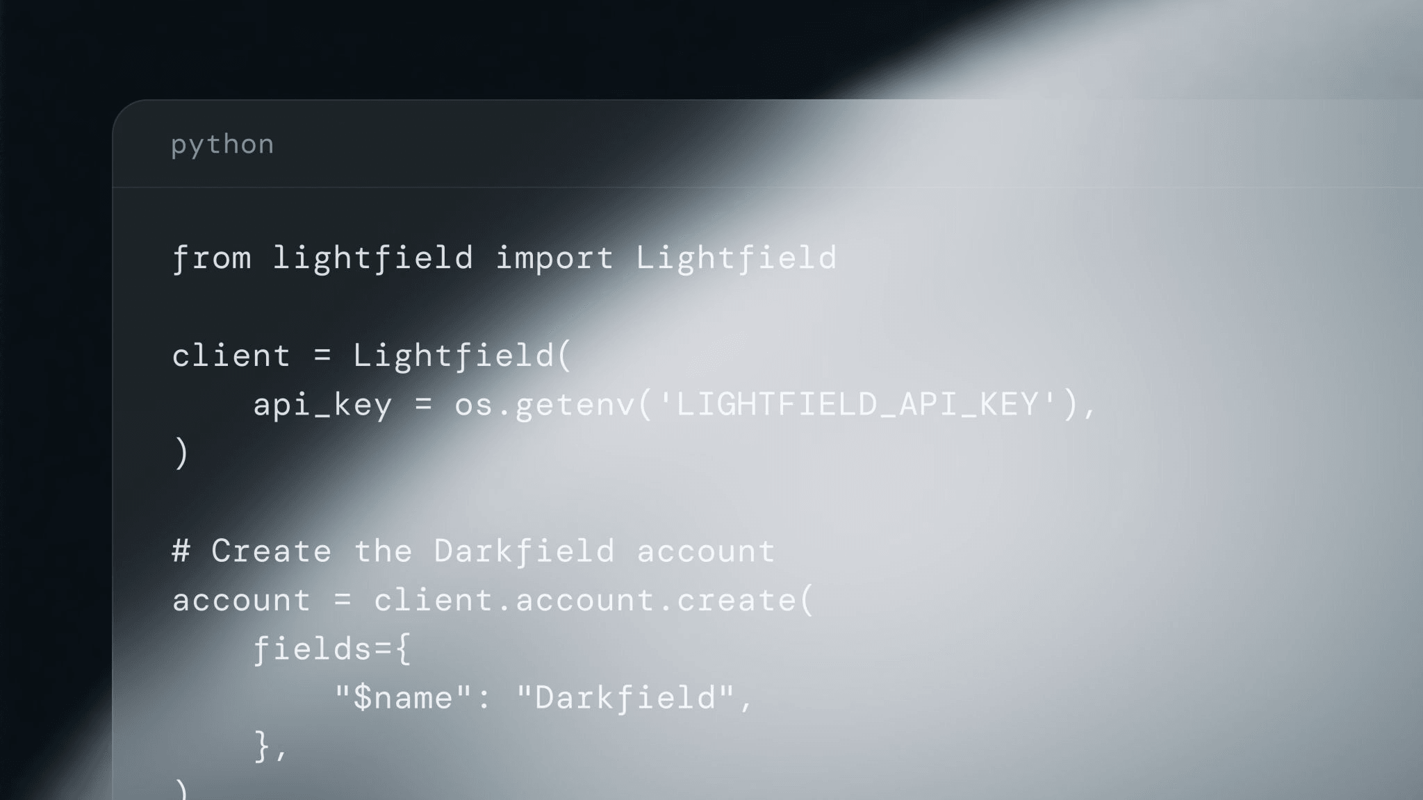 Next on our roadmap - support for Notes, Meetings, and Tasks; a TypeScript SDK and CLI; and an MCP server to enable agents to interact with Lightfield data through tools.