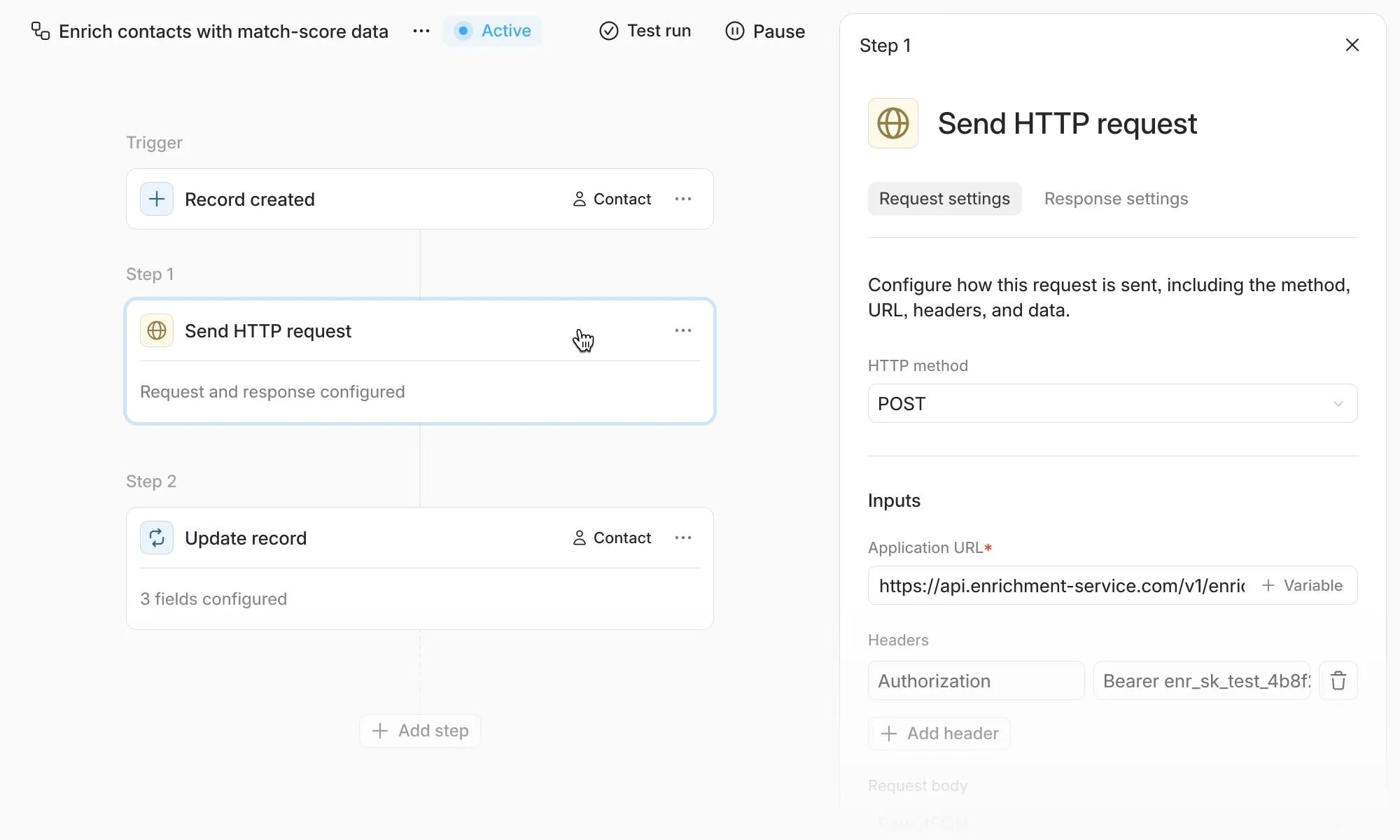 You can now configure an http out block in the workflow builder, allowing you to push Lightfield record data to other services.